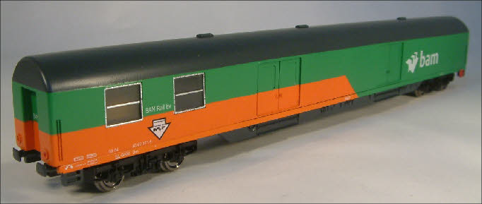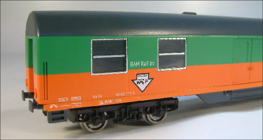 2 ramen in de zijwand. Het rijtuig heeft de groen/oranje huisstijl van de BAM gekregen