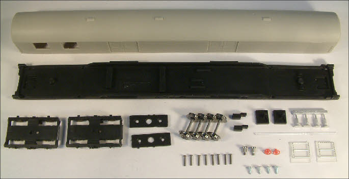 en draaistellen, assen, vacuüm gevormde ramen en witmetalen onderdelen. Het model