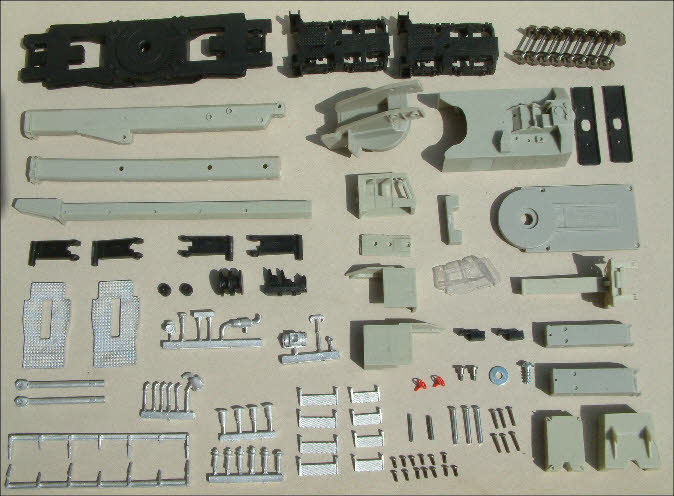 Deze bouwset bevat een grijze en zwarte giethars onderdelen, assen, vacuüm gevormde ramen, geëtste onderdelen en witmetalen onderdelen.