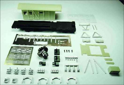 gevormde ramen, geëtste onderdelen en witmetalen onderdelen. Het model is exact op